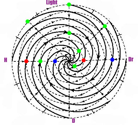 --- spiral - Neitro, which combines features of Yin and Yang-type meridians and corresponds